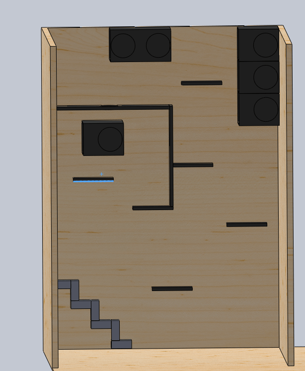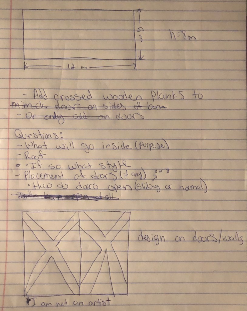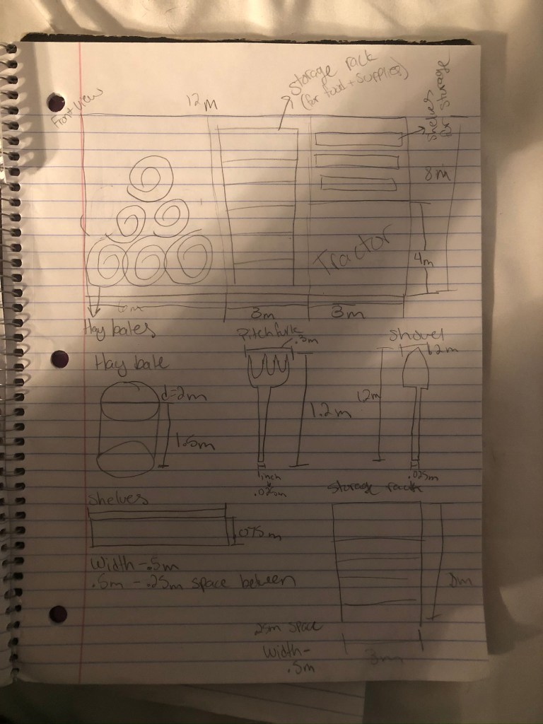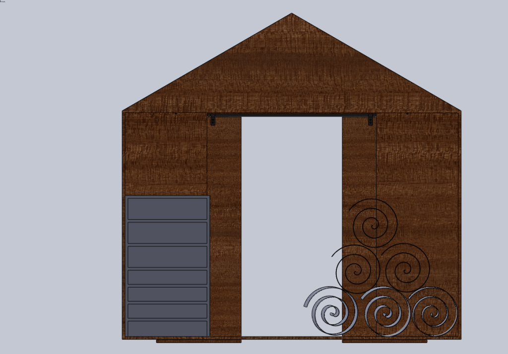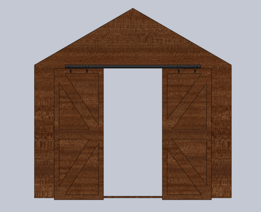 This week I worked on assembling the barn. Along the way I ran into a lot of problems due to not assembling as I created the parts. I started with assembling the barn doors and that caused me the most trouble. At first the brackets were too close for the pole to fit so I had to attach them farther apart. Next the bolt was too short to fit through both the door and the slider so I had to make the bolt longer. Next I realized I hadn’t made holes in the doors for them to attach to the slider so I had to go back and add those. The door is still slightly too long and hangs off the bottom of the barn. The pole also needs to be larger so the doors can open the way I would like them too. Next week I will work on adding the finishing touches and assembling the cat shower.